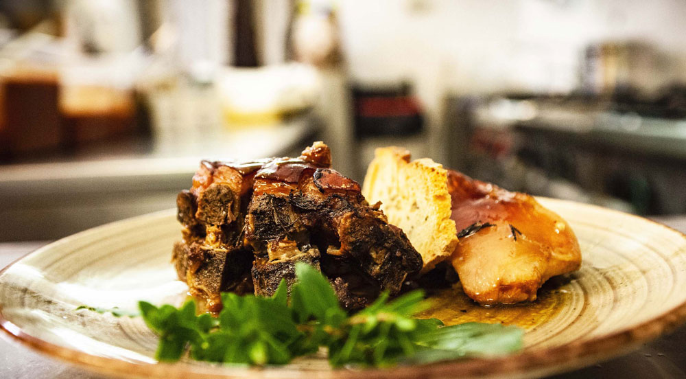 La carne che serviamo proviene in gran parte dalla nostra azienda agricola Serafini, garantendo freschezza e qualità. Offriamo piatti a base di carne cotta alla brace, al forno o in spezzatino.