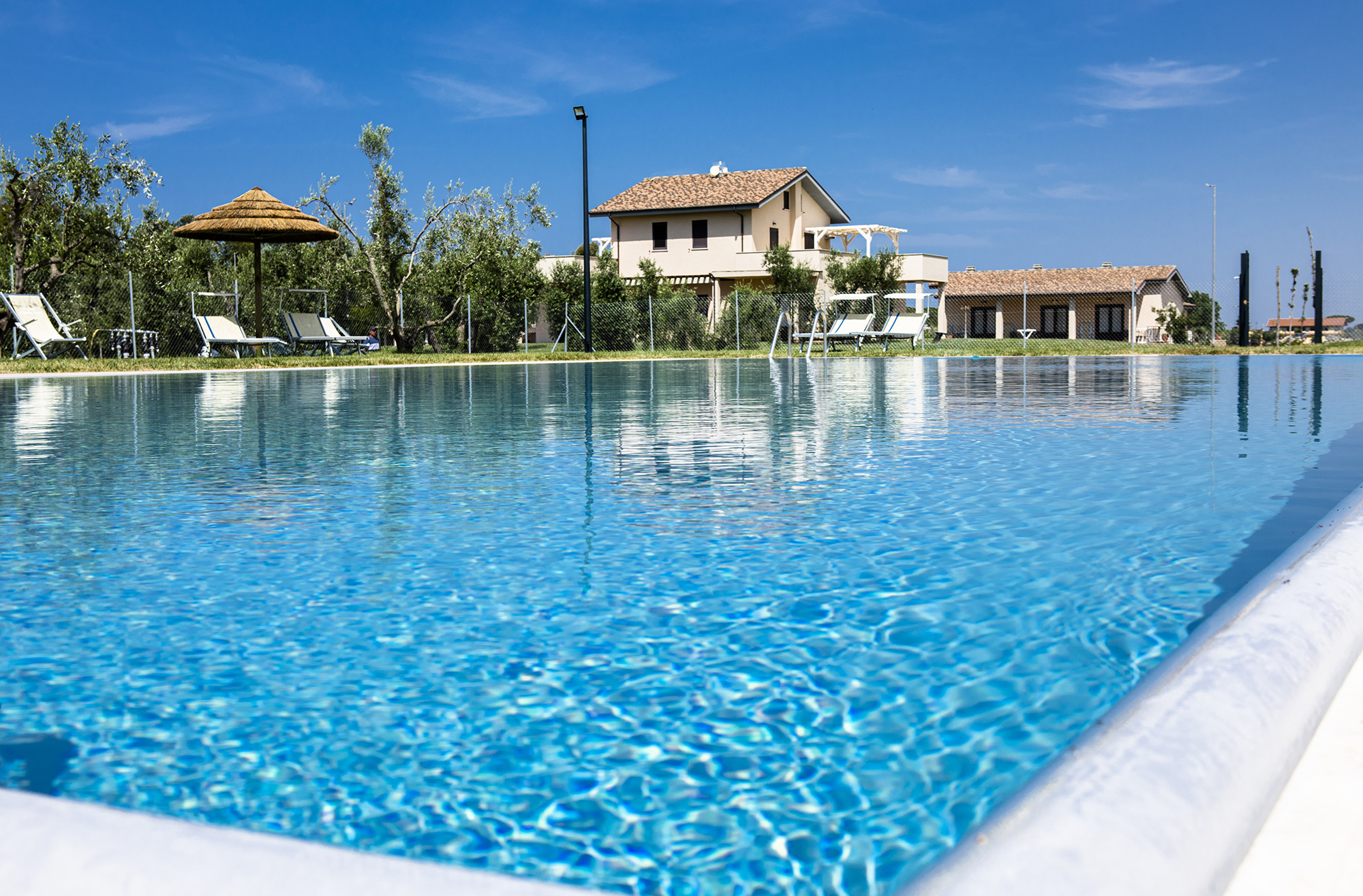 A pochi metri dagli alloggi risplende l' area piscina di recente costruzione.